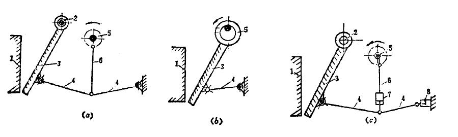 (a)-简摆鄂式破碎机;(b)-复摆鄂式破碎机;(c)-液压鄂式破碎机