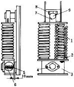 4-端盖;5-阻尼块;6-阻尼弹簧;7-弹簧上支座;8-螺栓;9-筛箱耳轴